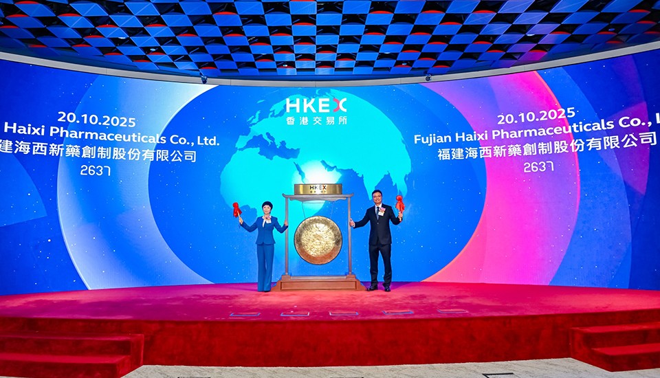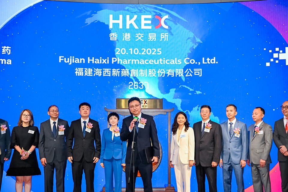 10月20日,海西新藥首次公開發(fā)行H股上市儀式在香港聯(lián)合交易所成功舉行,公司正式登陸主板,證券簡稱:海西新藥,股份代碼:02637.HK,以創(chuàng)新藥企姿態(tài)亮相國際資本市場,開啟“仿制藥穩(wěn)基賦能、創(chuàng)新藥領(lǐng)航突破”的全球化發(fā)展新征程。