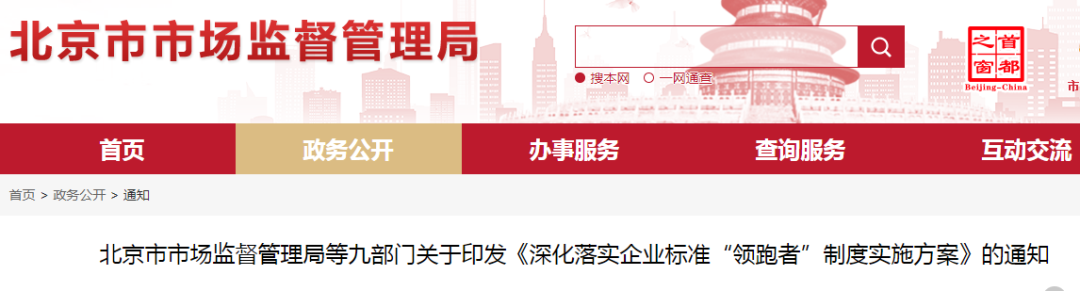 為加快完善新時代社會主義市場經(jīng)濟體制,推動壯大新業(yè)態(tài)、新模式,貫徹《市場監(jiān)管總局等八部門關(guān)于實施企業(yè)標準“領(lǐng)跑者”制度的意見》,落實《中共北京市委 北京市人民政府關(guān)于加快培育壯大新業(yè)態(tài)新模式促進北京經(jīng)濟高質(zhì)量發(fā)展的若干意見》要求,鼓勵企業(yè)創(chuàng)制先進標準,深入推進企業(yè)標準“領(lǐng)跑者”制度實施,以高標準引領(lǐng)首都經(jīng)濟高質(zhì)量發(fā)展,制定本實施方案。