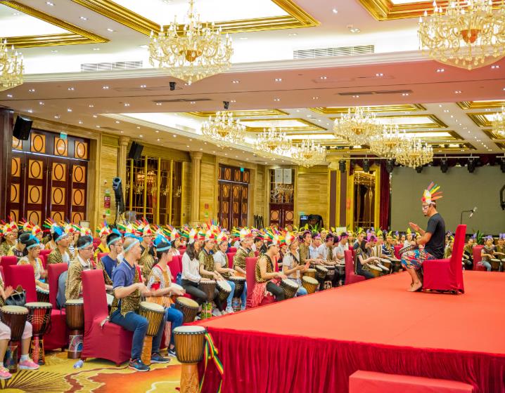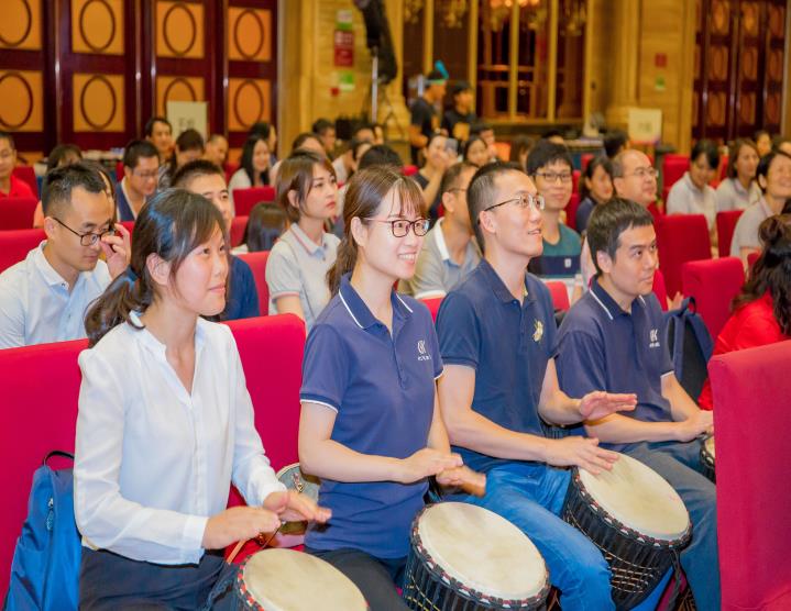初始,在無言的敲打演奏中,每位北科人皆特立獨行,樂章零落散碎,主持人便提出北科多年來在細胞領(lǐng)域堅持的三個關(guān)鍵詞“專心、專業(yè)、專注”以勵大家,無論何時、何地、何事,身為北科一份子,北科人都應上下一心、和而不同,在共同的目標面前,所有人放下自己的身份、地位,只為實現(xiàn)在北科生物十三周年慶的今日,為它送上一曲誠摯的生日祝福。最后,在主持人耐心的引領(lǐng)下,在場的300余位北科人統(tǒng)一節(jié)奏、鼓點,為北科生物13周年慶典送上一曲慷慨激昂的音樂祝福!