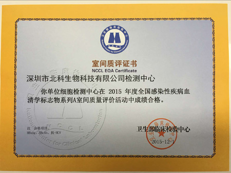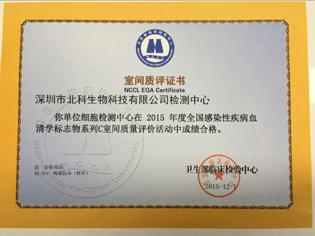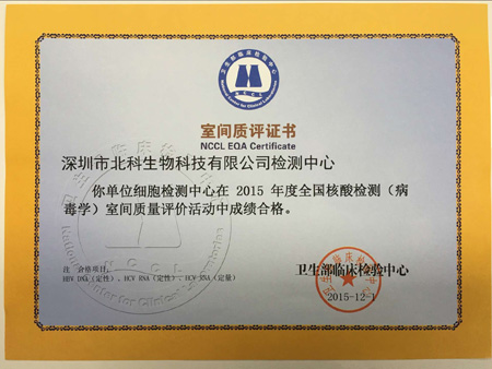 至今,北科生物自2011年以來,已參加4次衛(wèi)生部臨床檢驗中心組織的室間質(zhì)評活動,均獲得合格的《室間質(zhì)評證書》;今后,深圳細胞質(zhì)量檢測平臺將持續(xù)參加室間質(zhì)評項目,為客戶儲存的細胞及制備臨床級細胞提供更安全保障。